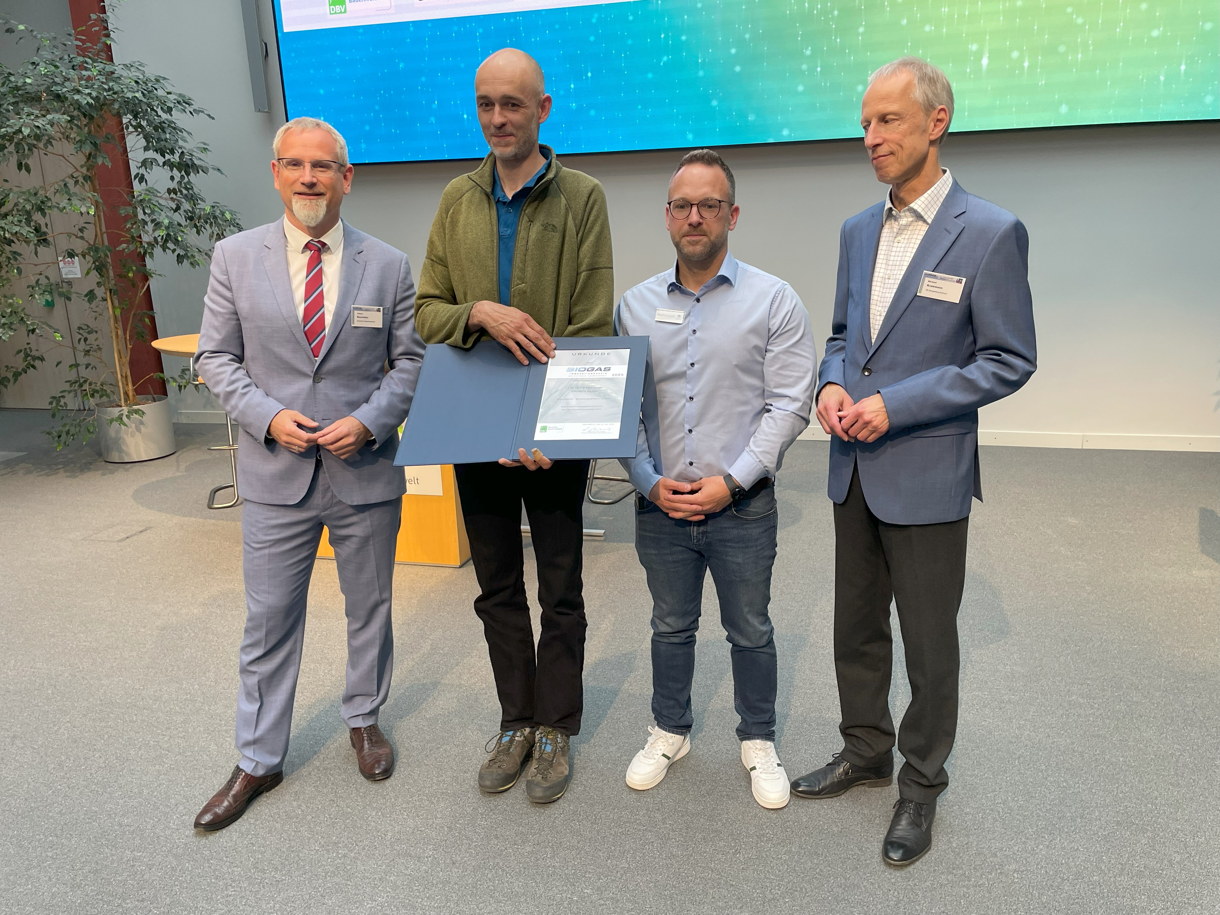 Traditionell wurden die mit insgesamt 10.000 € dotierten Biogas-Innovationspreise der deutschen Landwirtschaft (Gold, Silber,Bronze) - Bereich Wissenschaft - des Jahres 2025 und der gleichlautende Preis für den Bereich Wirtschaft 2025 wieder in Präsenz in der Deutschen Bundesstiftung Umwelt verliehen. Unterschrieben vom Präsidenten des Deutschen Bauernverbandes Joachim Rukwied wurden die Urkunden von Johann Meierhöfer aus der Geschäftsstelle des DBV an die Preisträger verliehen.